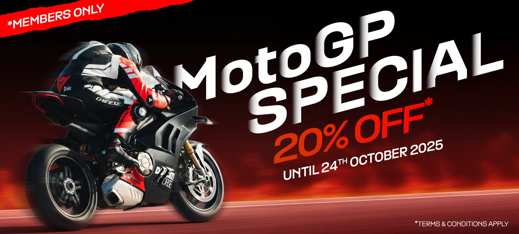 1.1 The MotoGP Special is available exclusively to Ridelah Members shopping in-store or online at www.ridelah.com.