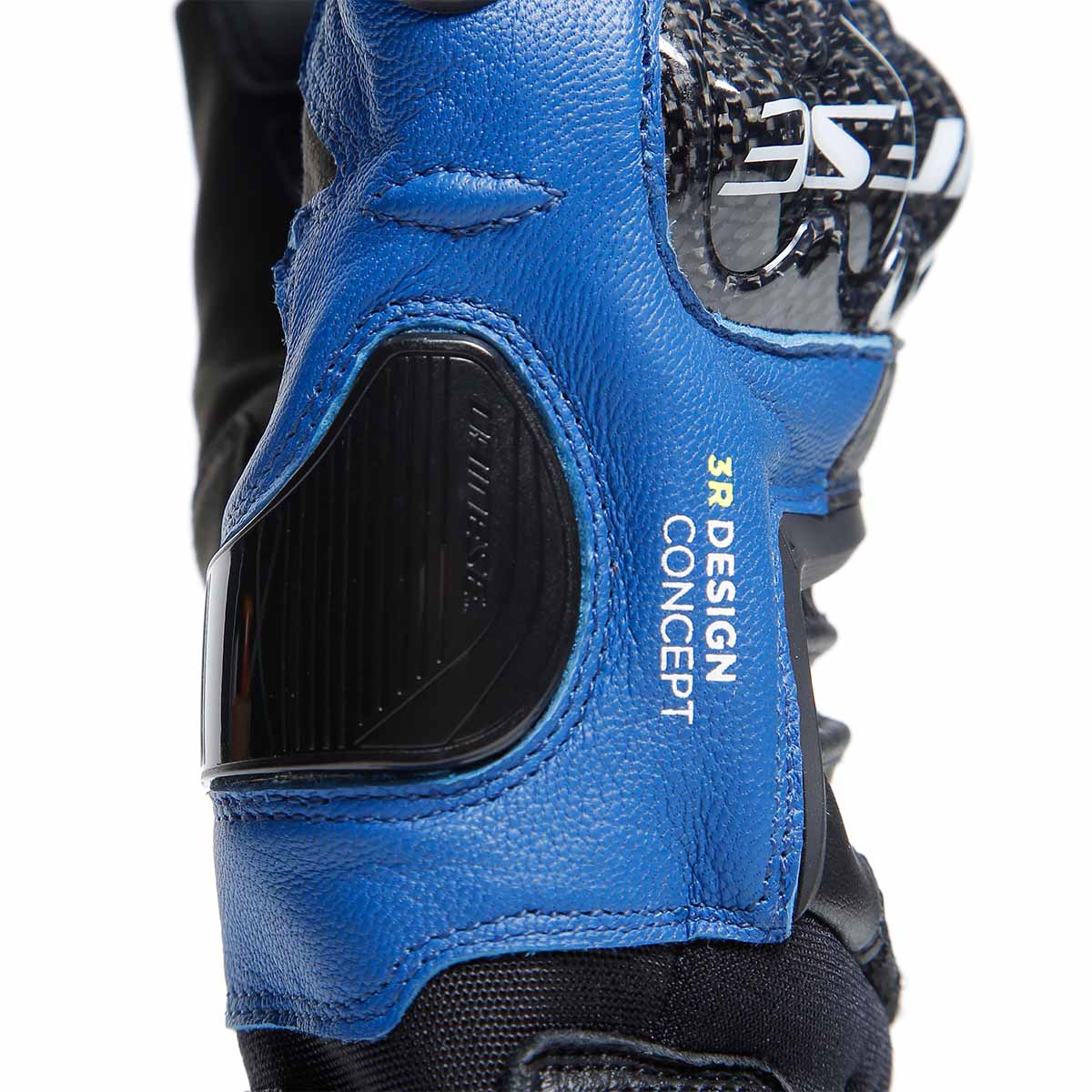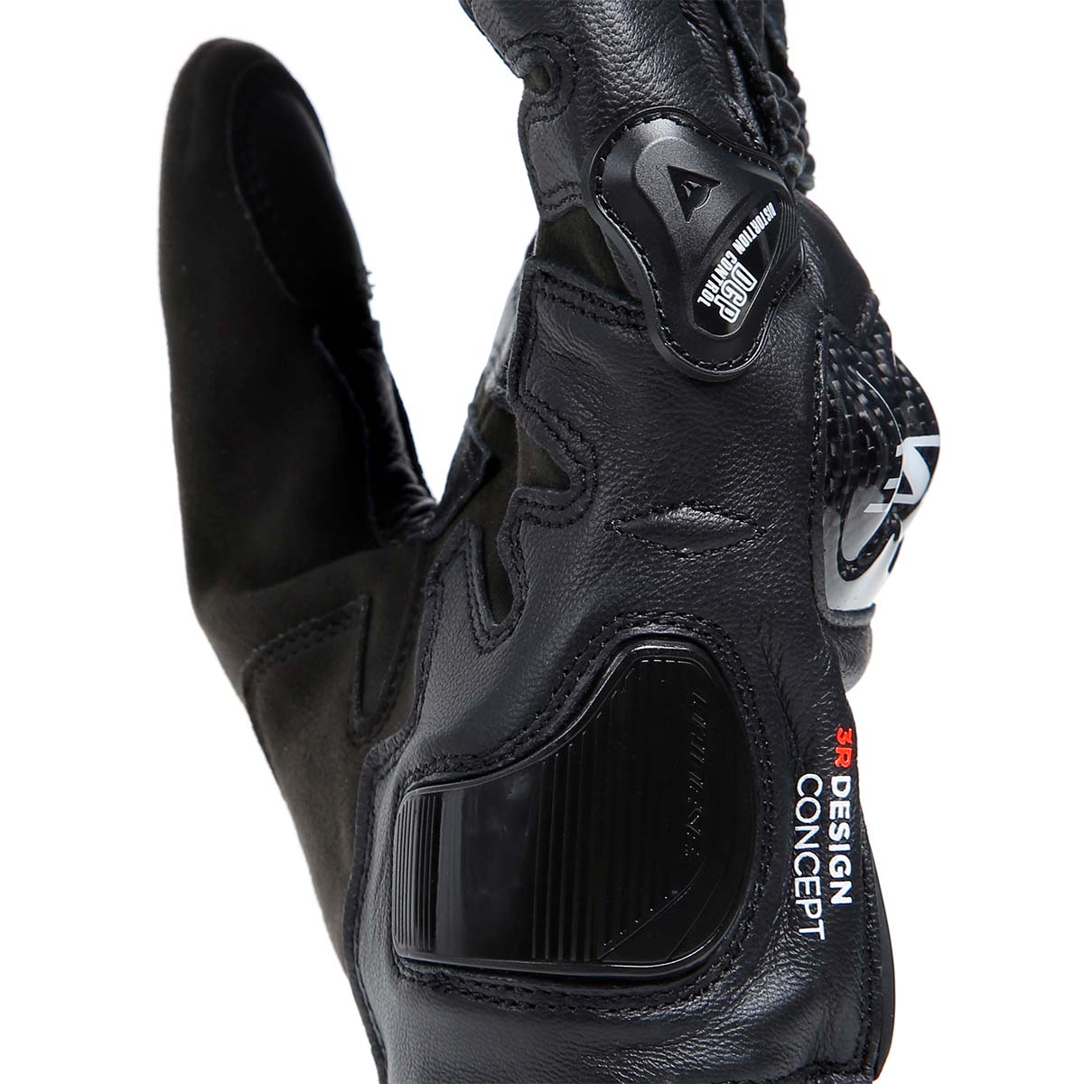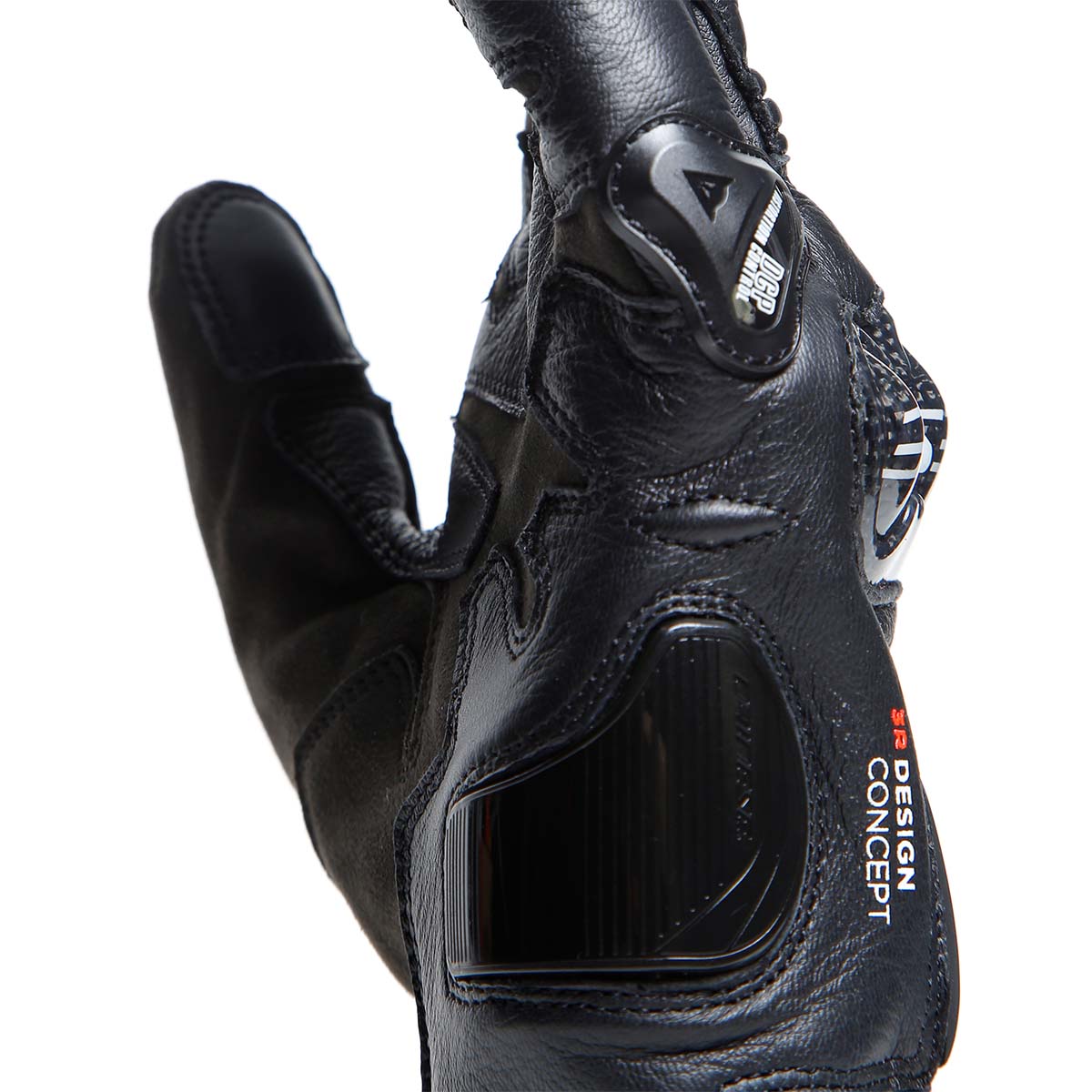 The Dainese Carbon 4 short motorcycle gloves are a sport model that combines comfort, coolness and ventilation deriving from the mesh inserts on the back, top safety standards guaranteed by the DCP protection system on the little finger, the strength of the leather and the protection provided by carbon knuckles, designed for optimal ergonomic performance and comfort of fit.