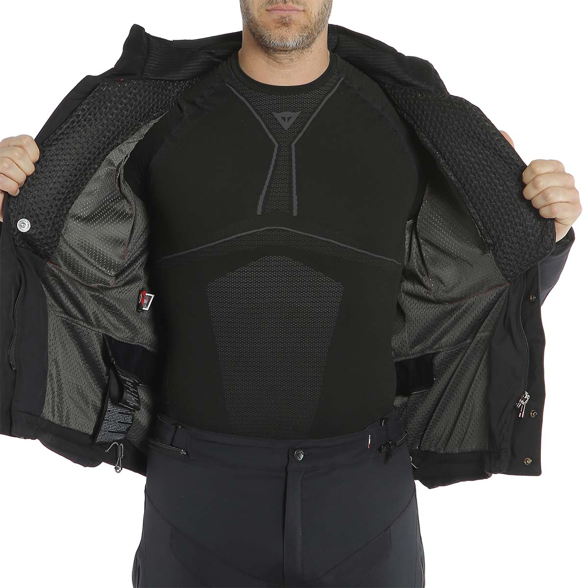 Bi-elastic Mugello fabric, removable thermal linen and collar and waterproof and breathable GORE-TEX® 3 membrane provide excellent comfort and protection from atmospheric agents all year long.