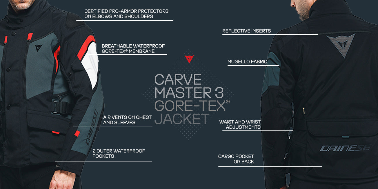 Carve Master 3 Lady GORE-TEX® is the most advanced women’s motorcycle sport touring jacket in the Dainese range and ensures comfort and maximum performance all year round.