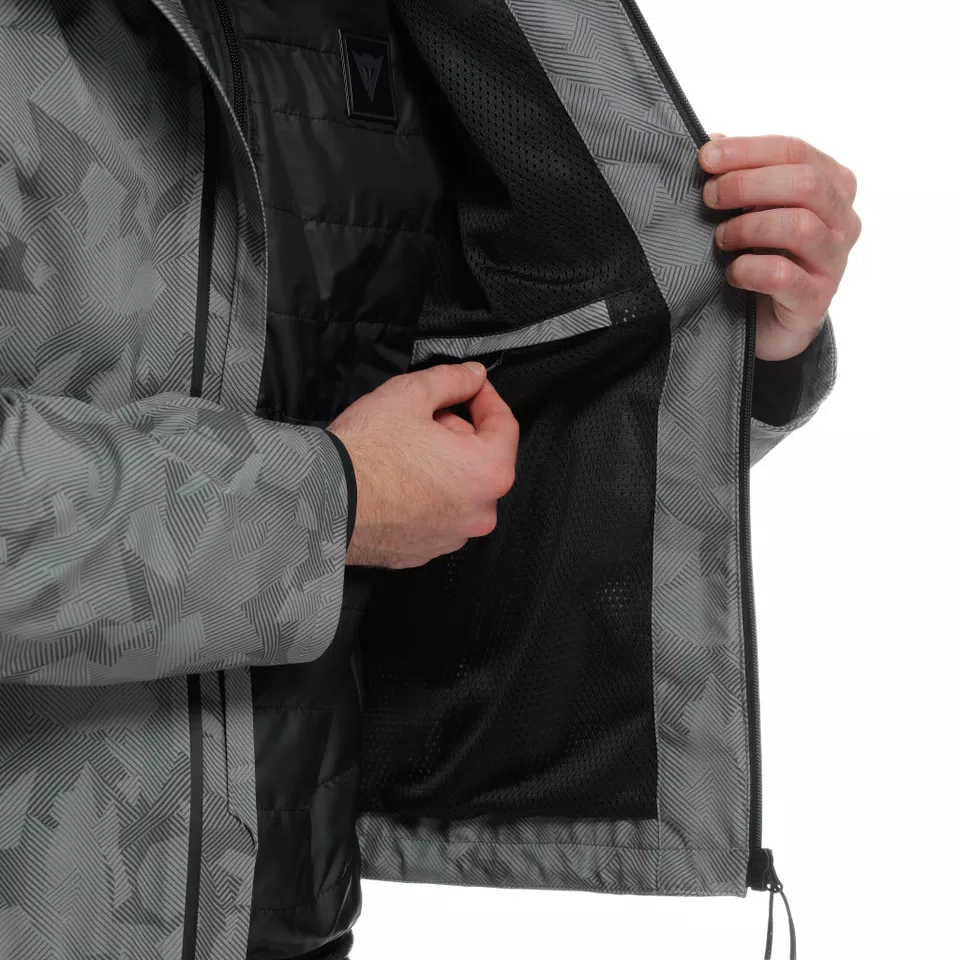 For maximum thermal comfort, the waterproof membrane, which protects against the coldest temperatures, is complemented by a detachable wadded thermal layer that can also be worn as a stand-alone garment if needed.