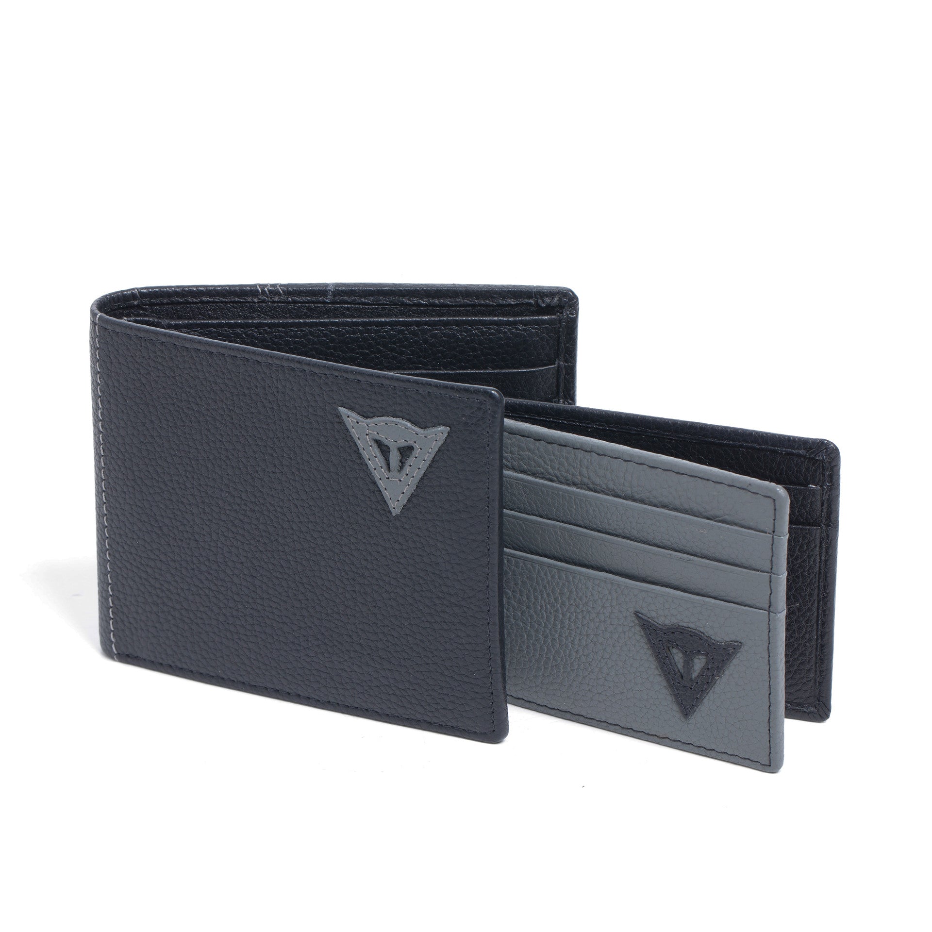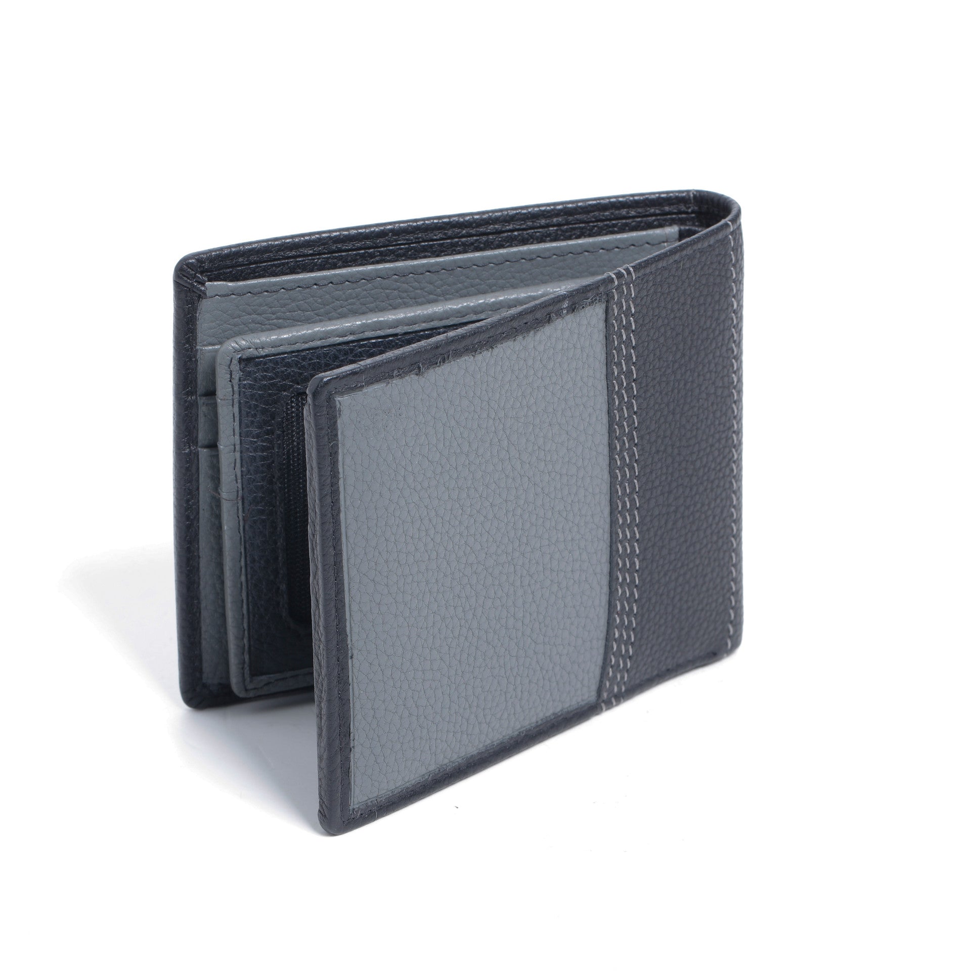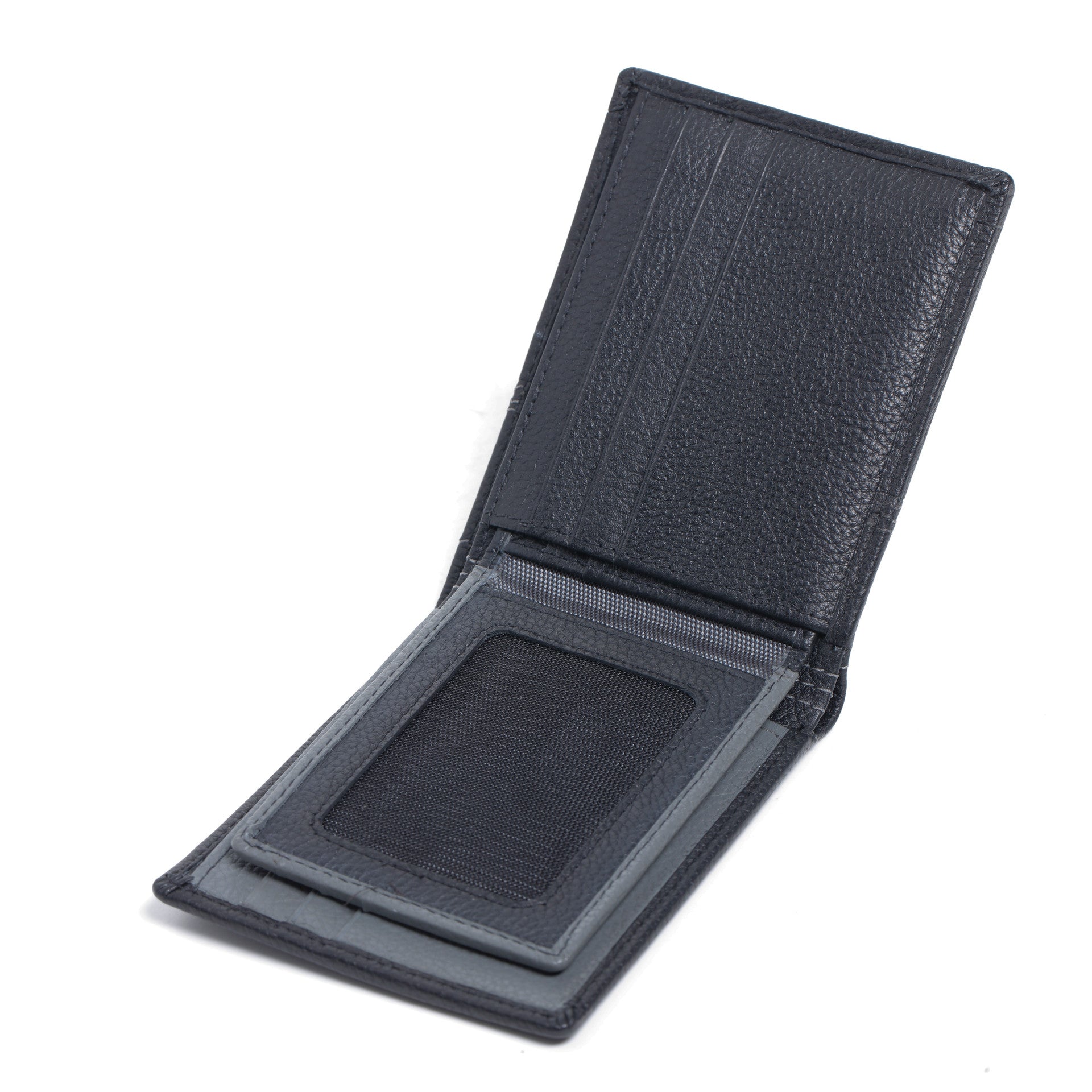 Folding wallet in genuine leather with card, bill and coin holders, and super-slim pocket design.