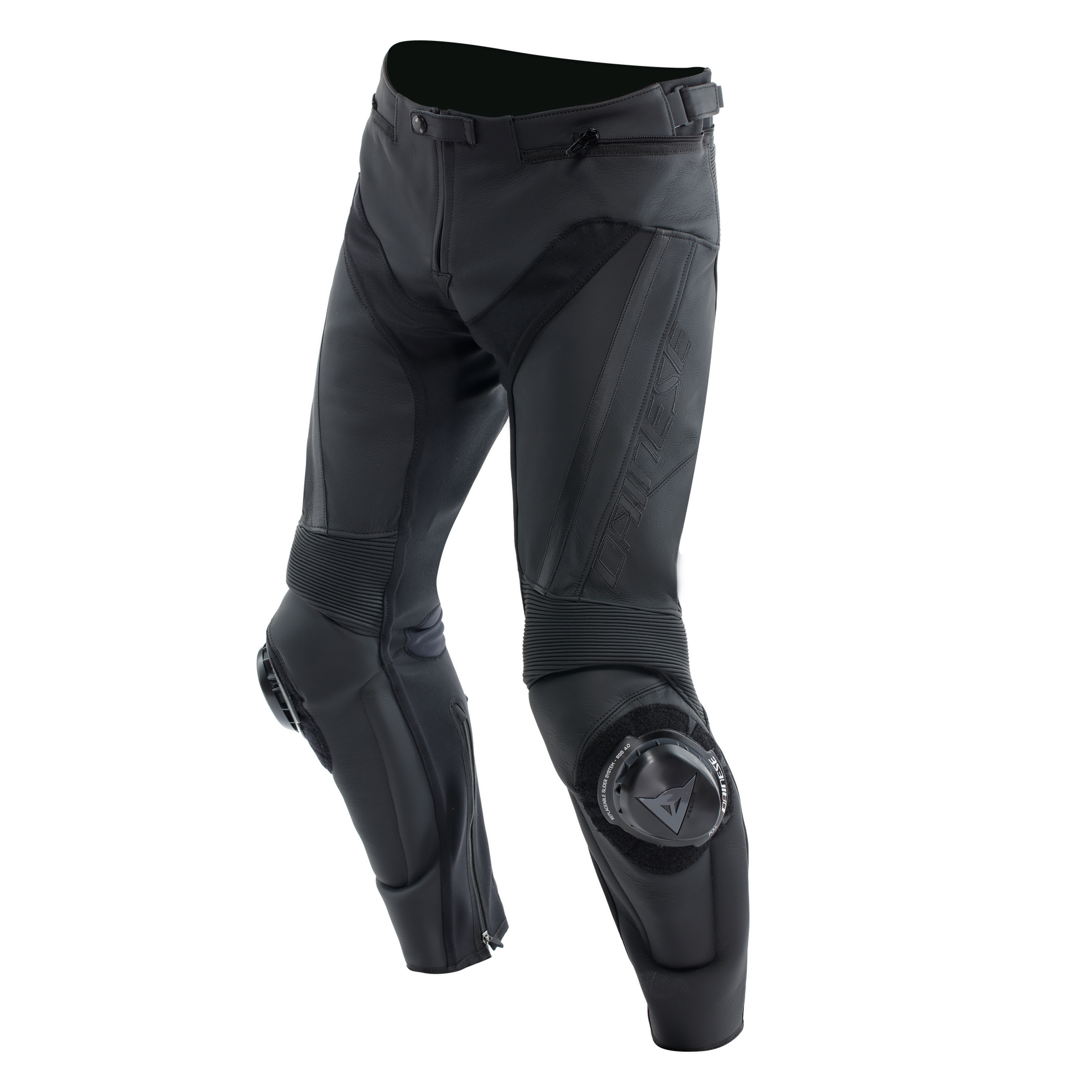 Delta 4 Perf. are motorcycle pants in Tutu cowhide leather with localized perforation that integrate inserts in S1 stretch fabric – just like the Racing 4 and Avro 5 jackets, which they perfectly complement and easily attach to via a convenient zipper.
