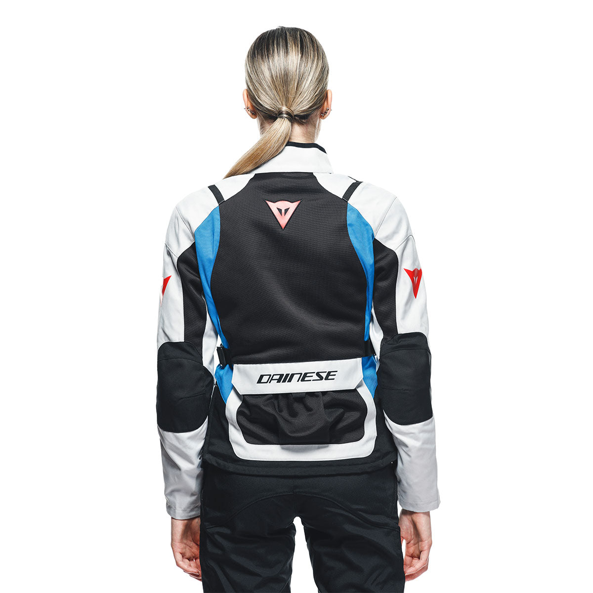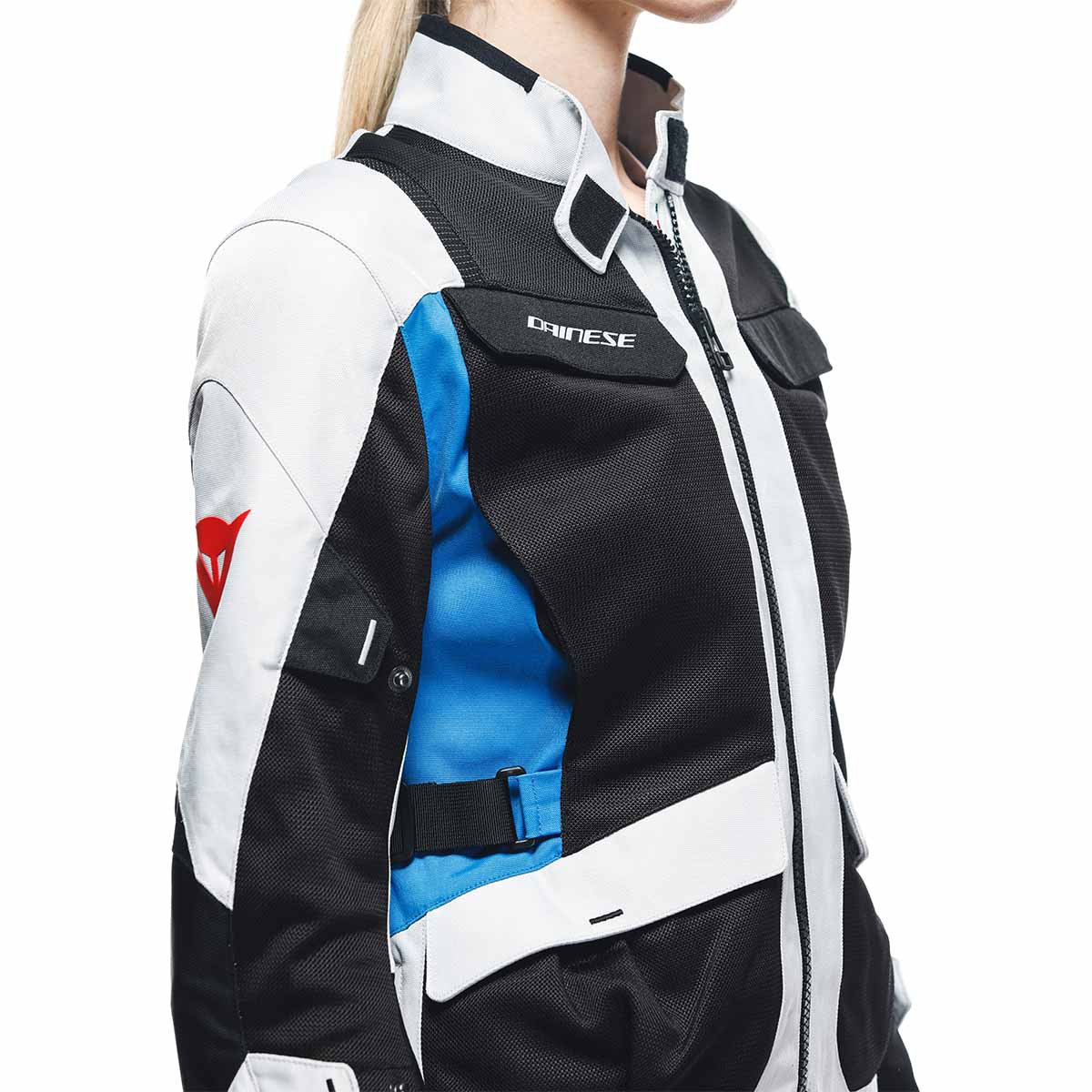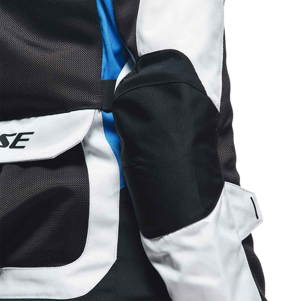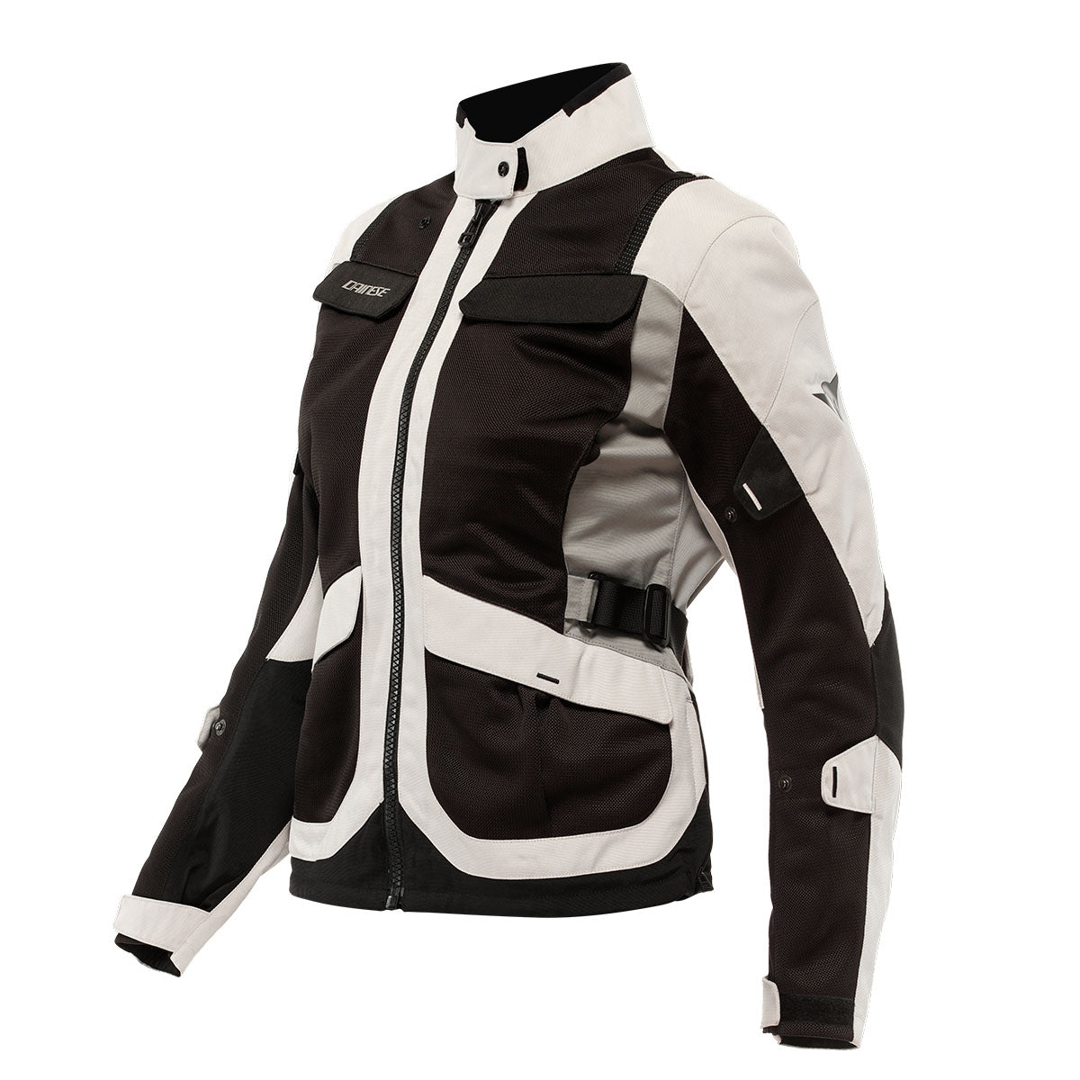 Designed for adventure touring and travel both on and off road, the Dainese Desert Lady is a women's summer motorcycle jacket with a fit specifically made for the female body. Made of lightweight durable Poly600 fabric with wide-knit Omega Mesh front and back inserts, it offers optimal ventilation with the option to remove the inner windproof lining and store it in the large back cargo pocket. The soft Pro-Armor protectors with EN 1621.1 Level 2 Type A certification on the shoulders and elbows guarantee maximum impact protection, and they can be enhanced by a back protector when inserted into the pocket. Its fit is fully customizable with an adjustable collar, waist, hips, sleeves and cuffs, and its jacket/pants connection system. Four pockets on the front, one on the back and one inside let you store small items, always keeping them handy. It is ideal for long motorcycle trips in hot climates, switching from road to off road, making the Desert Lady jacket the perfect mix of versatility, comfort, and practicality.