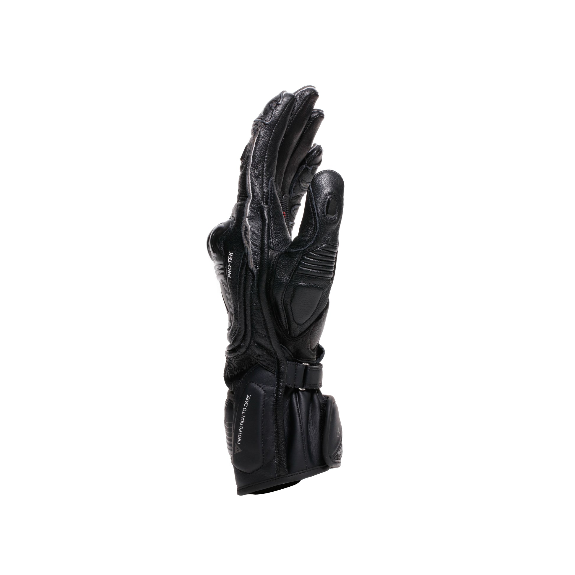 As well as protection, the gloves boast excellent levels of mobility and ergonomics owing to the pre-curved construction of the fingers, the joints on thumb and fingers, the pre-curved ergonomic fabric sleeve with wide entry and the anti-slip strap – details that enhance the performance of these professional gloves so that riders are free to fully focus on performance.