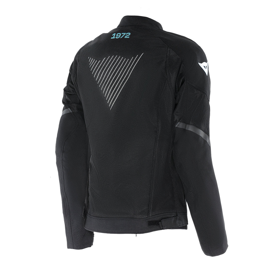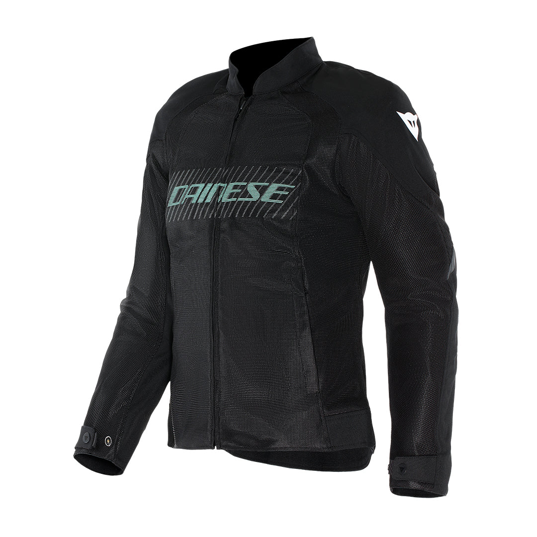 Motorcycle jacket in mesh fabric featuring a sporty cut, specifically designed to suit the female body.