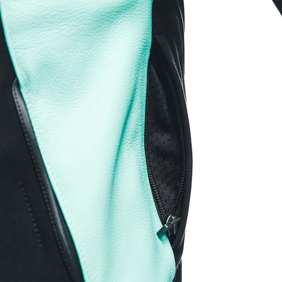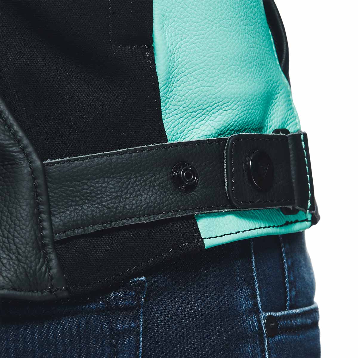 RACING 4 LADY LEATHER JACKET PERF. (BLACK/ACQUA-GREEN)