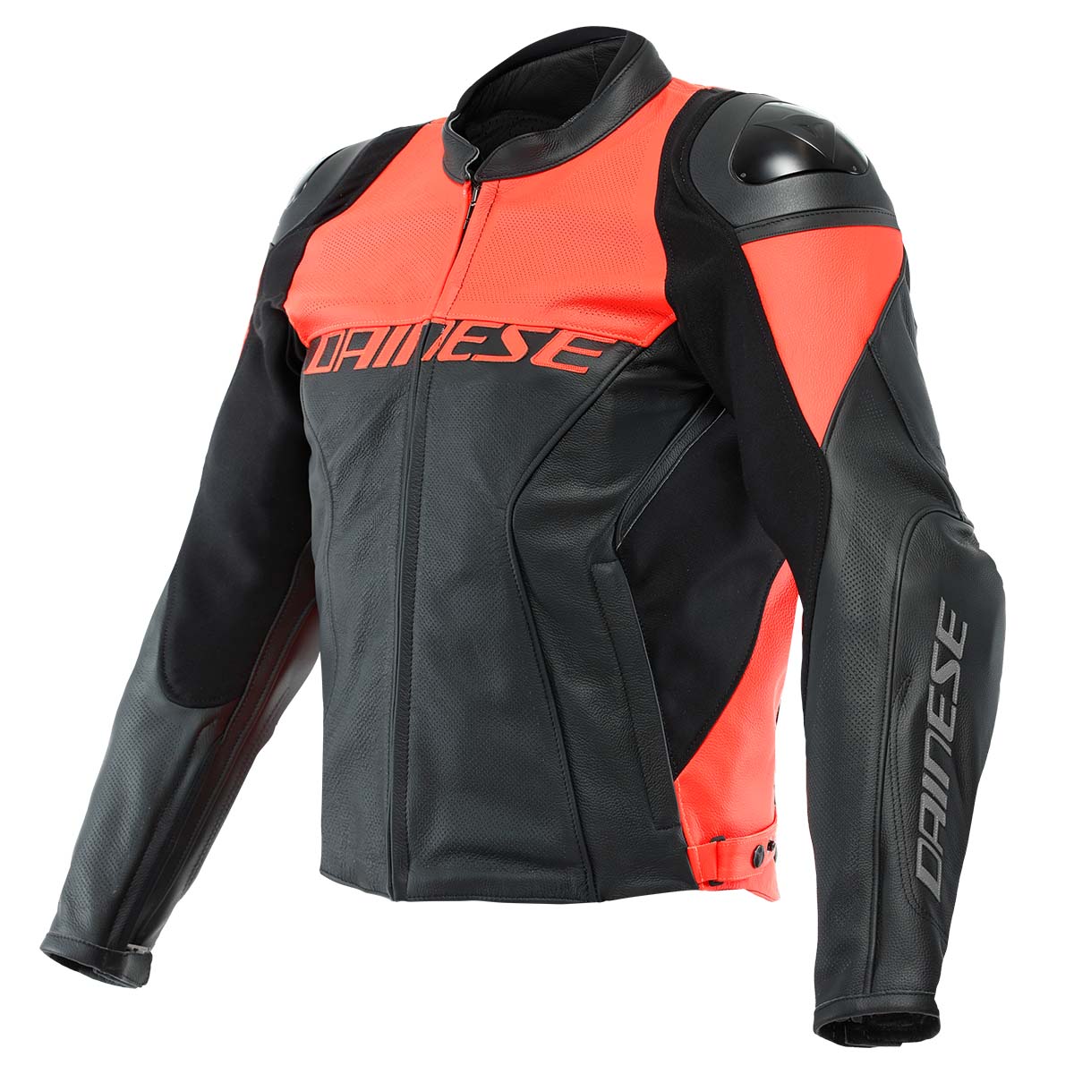 The Dainese Racing 4 motorcycle jacket is equipped with a zipper at the hem, which allows it to be connected to motorcycle pants, and EN 1621.1-certified composite protectors at the elbows and shoulders, which are further protected by interchangeable external aluminum plates – a distinctive Dainese technology – designed to support and facilitate sliding in case of a fall, thus avoiding the dangerous risks of rolling on asphalt.