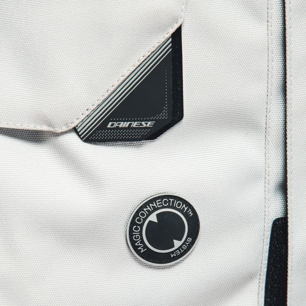 Dainese Magic Connection™ technology features a magnetic system that allows compatible Dainese gloves to be secured conveniently to the jacket, so they’re always to hand and don’t get lost when refueling or during short stops.